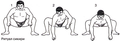 Сикири — предстартовые подготовительные движения. Борцы садятся на корточки, широко расставив ноги и наклонив туловище вперед. Бедра и плечи при этом держат горизонтально, а руками, стиснутыми в кулаки, опираются на поверхность дохё вдоль сикирисэн, не касаясь, что соответствует положению «готов!»